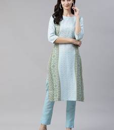 Beautiful digital printed sky blue colour rayon kurti for ethnic look
