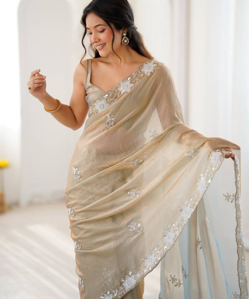 | Product Name | Beige Color Chiffon Graceful Embroidered Bollywood Saree | |