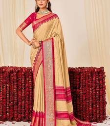 Beige color velvet tussar silk blend fabric woven saree with smart elegant print