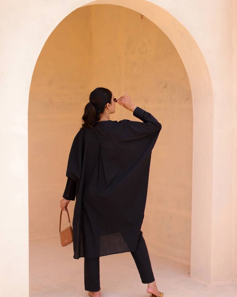 Black color beautiful solid designer blended cotton top bottom set