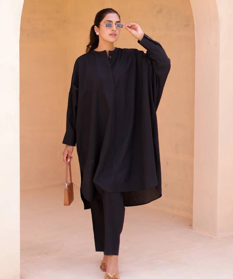 | Product Name | Black Color Beautiful Solid Designer Blended Cotton Top Bottom Set | |