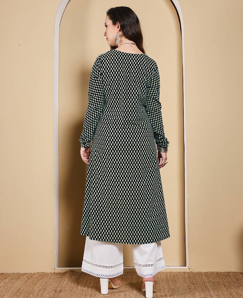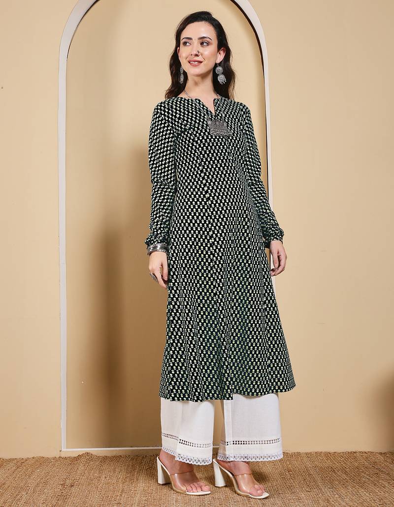 | Product Name | Black Color Cotton Fabric Designer Printed Stylish Long Kurti | |