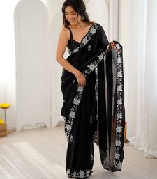 | Product Name | Black Color Chiffon Graceful Embroidered Bollywood Saree | |