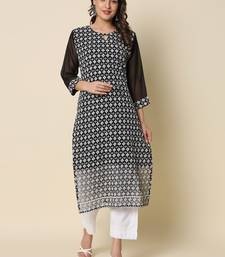 Black color georgette fabric chikankari work formal kurta for girls