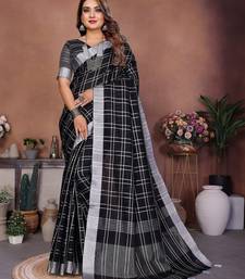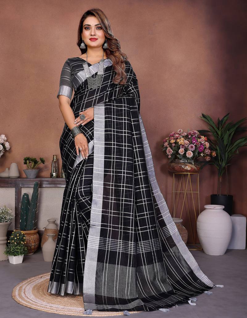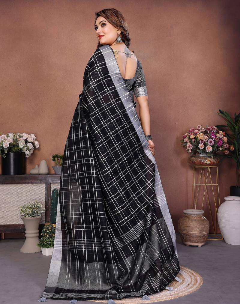 | Product Name | Black Color Linen Cotton Fabric Woven Checks Designer Trendy Ethnic Saree | |