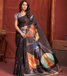 Black color malai crepe art silk fabric designer digital printed girlie fashinova saree