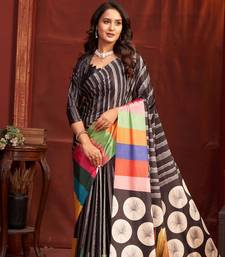 Black color malai crepe art silk fabric designer digital printed girlie fashinova saree