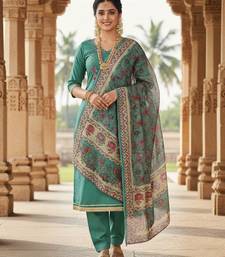Blue color beautiful ethnic partywear embroidered suit unstitched