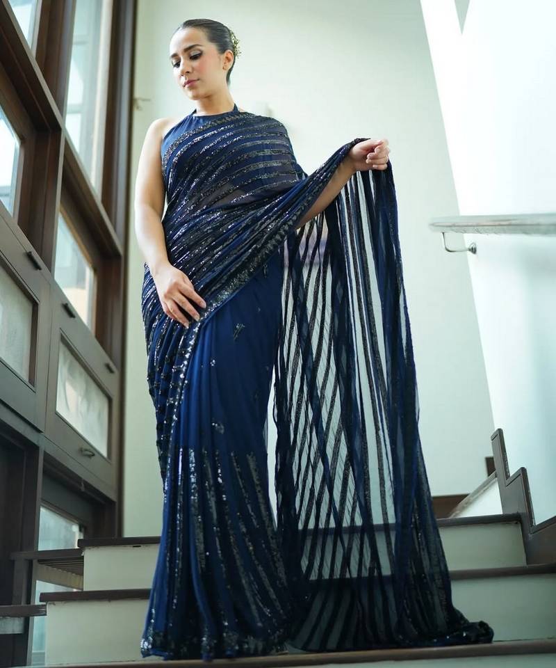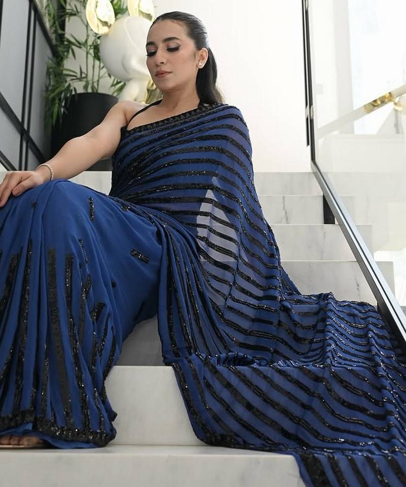 | Product Name | Blue Color Bollywood Style Smart Embroidered Ceremonial Saree | |