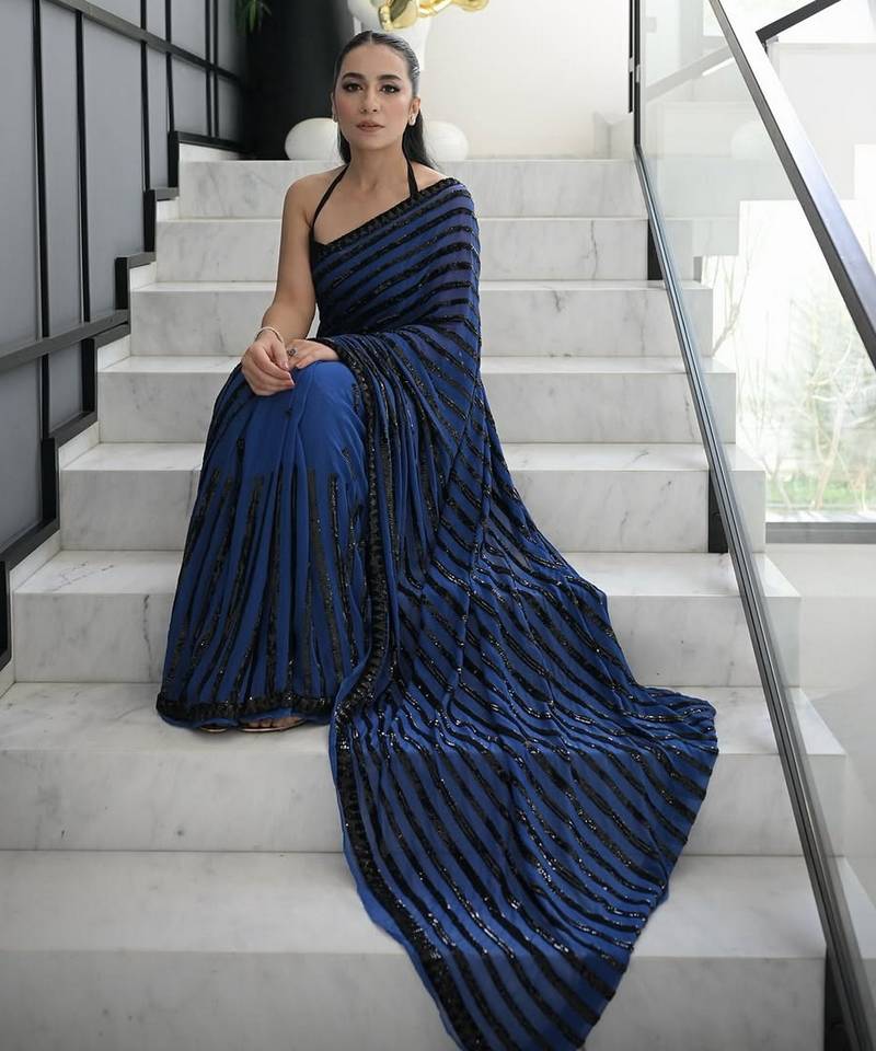 | • | Saree | : | Color- Blue / Fabric- Faux Georgette |
