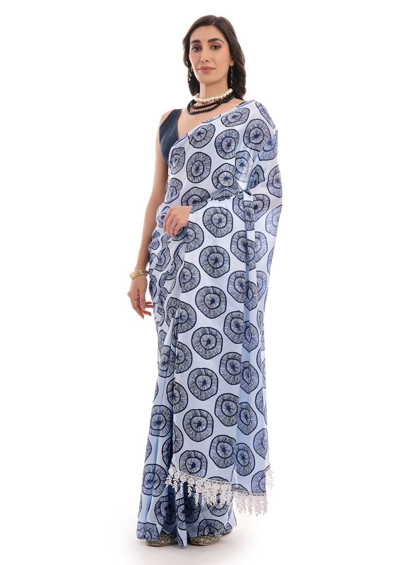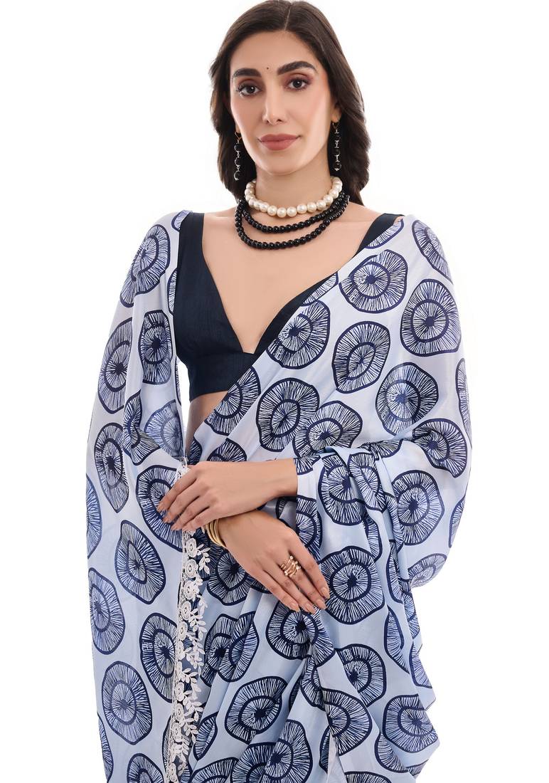 | Product Name | Blue Color Chinon Fabric Designer Digital Printed Ready To Wear Saree | |