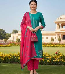 Blue color cotton slub fabric designer casual suit with embroidery unstitched
