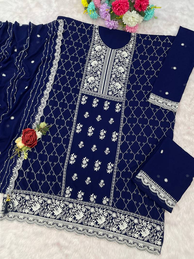 Blue georgette embroidered palazzo suit semi stitched