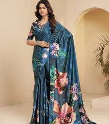 Blue color malai crepe art silk designer digital printed ethnic partywear saree