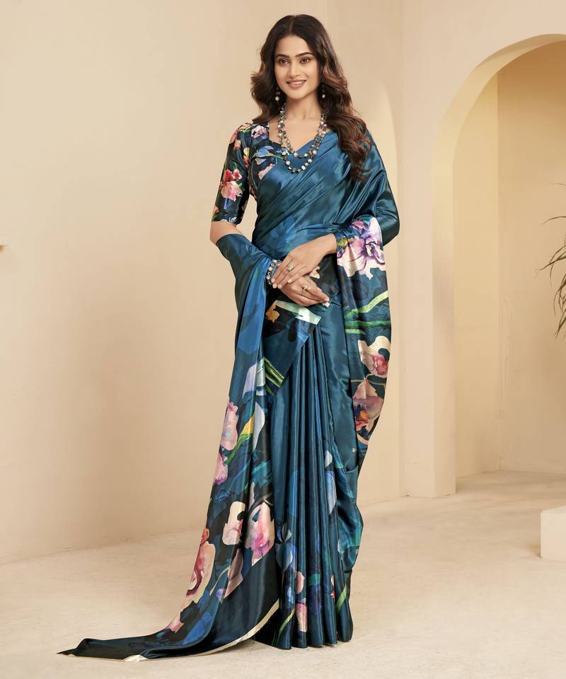 | Product Name | Blue Color Malai Crepe Art Silk Designer Digital Printed Ethnic Partywear Saree | |