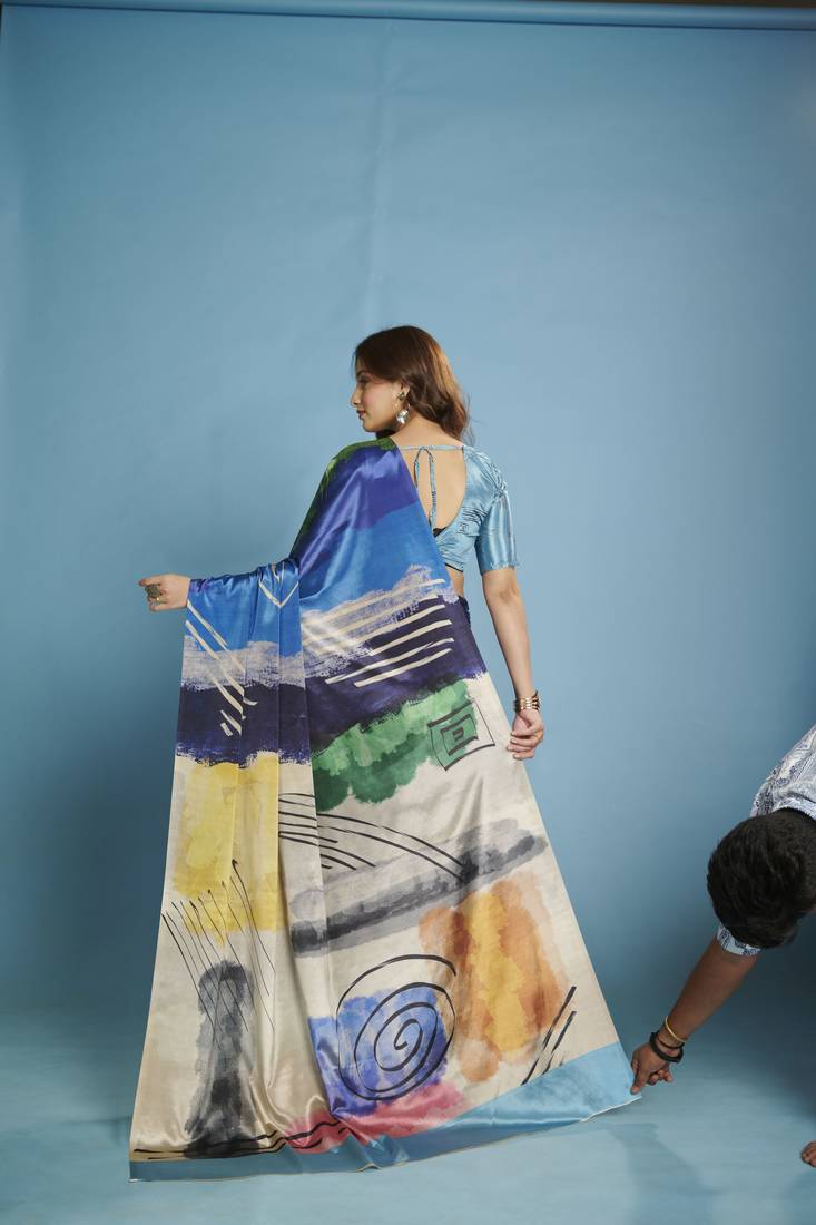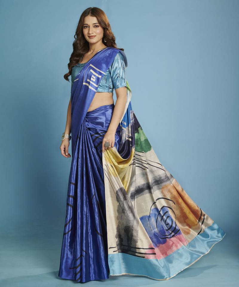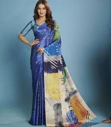 Blue color malai crepe art silk fabric beautiful digital printed saree