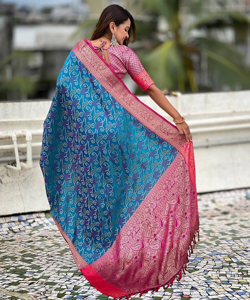 | Product Name | Blue Color Patola Silk Blend Fabric Woven Meenakari Designer Saree | |
