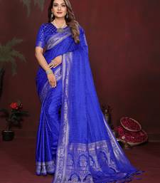 Blue color satin silk fabric woven jari designer sophisticated saree