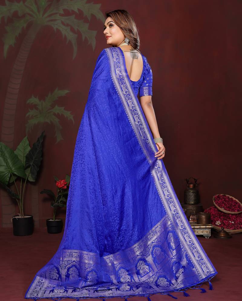 | Product Name | Blue Color Satin Silk Fabric Woven Jari Designer Sophisticated Saree | |