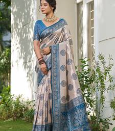Blue color silk blend woven designer ethnic partywear saree