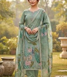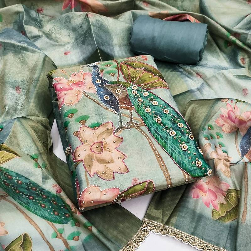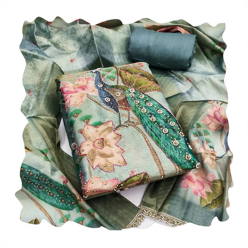Blue color simmer cotton fabric designer salwar kameez with elegant hand work unstitched