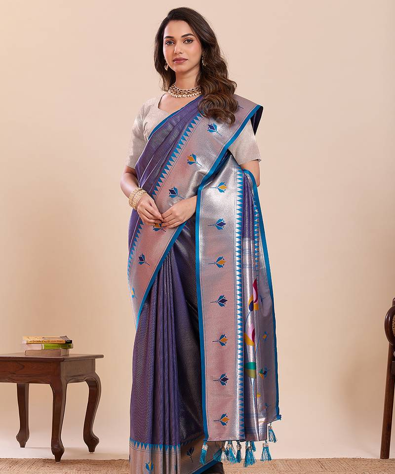| Product Description | Garb This Party Wear Saree Paired With Blouse.This Saree And Blouse Are Soft Silk Fabric With Woven Paithani Meenakari Designer. Buy This Pretty Saree Now. |