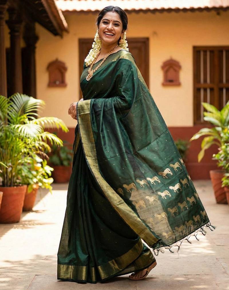 | Product Name | Bottele Green Color Soft Silk Fabric Woven Designer Saree For Ethnic Looks | |