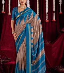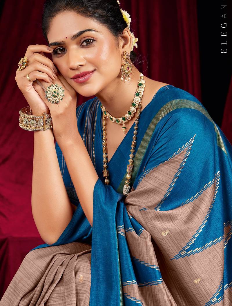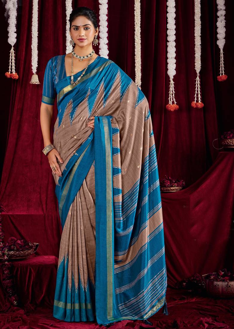 | Product Name | Brown & Blue Color Ikkat Art Silk Fabric Designer Zig Zag Printed Traditional Party Looks Saree | |