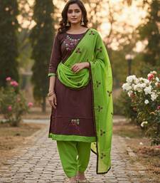 Brown color cotton slub fabric designer casual suit with embroidery unstitched