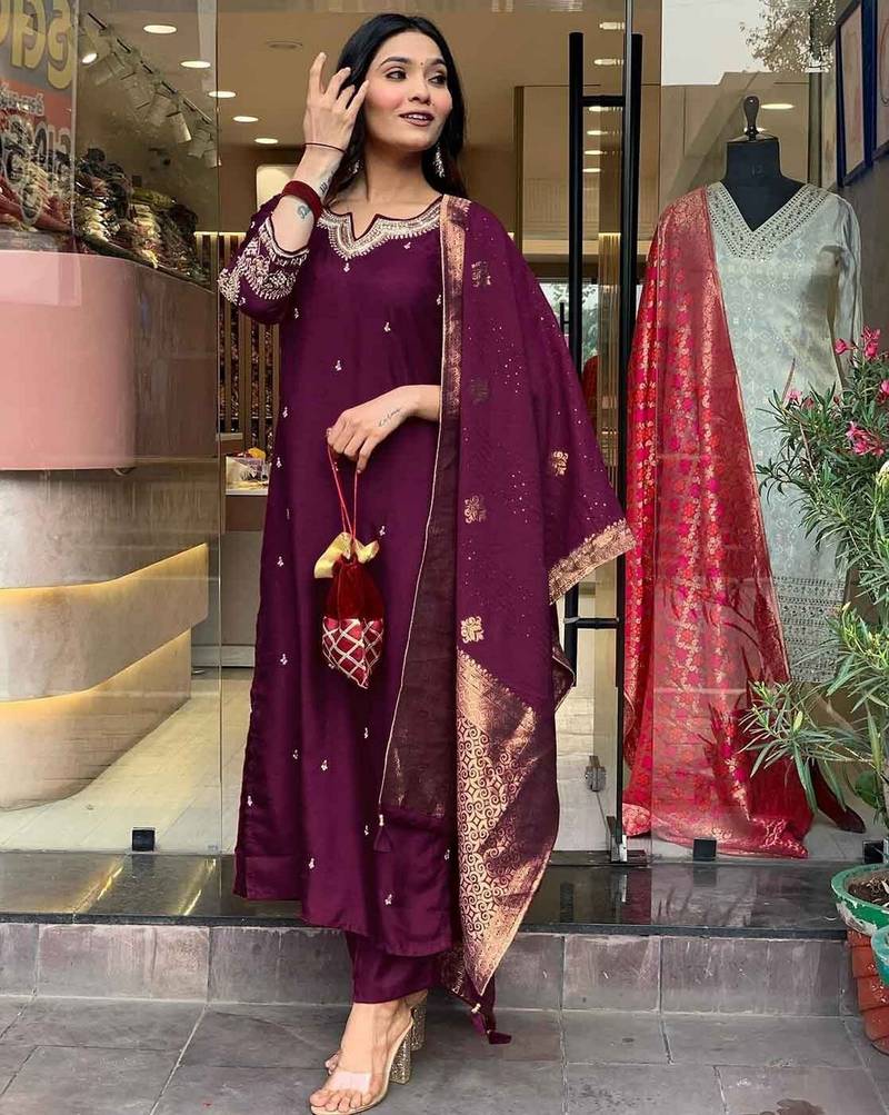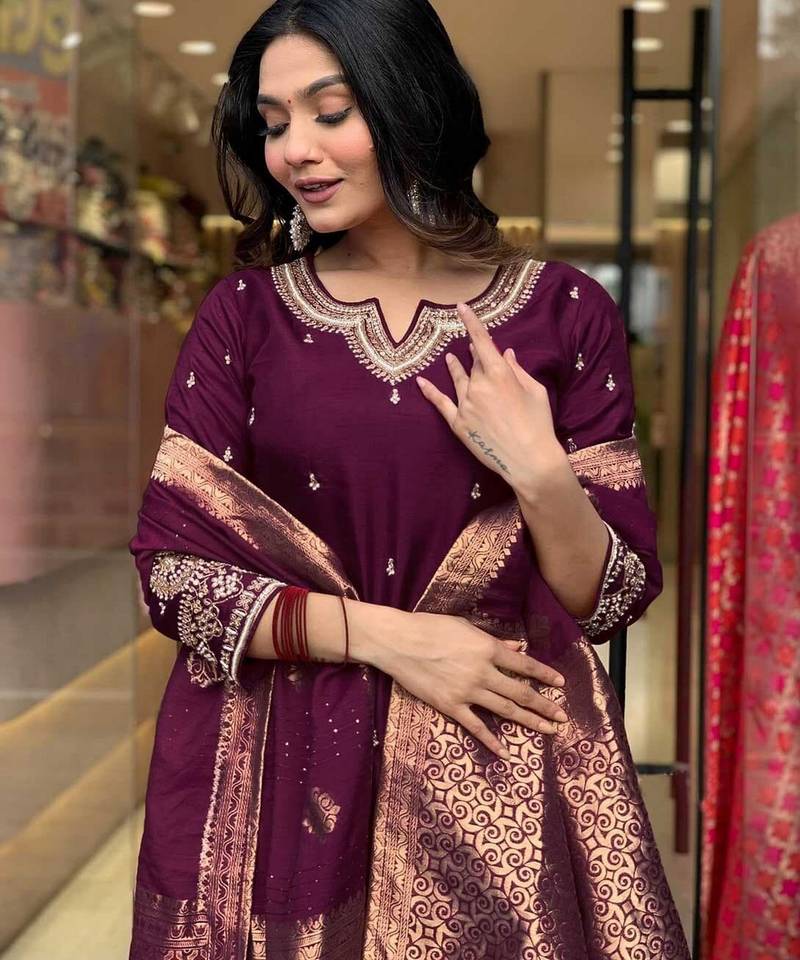 | Product Name | Burgundy Embroidered Ethnic Suit | |