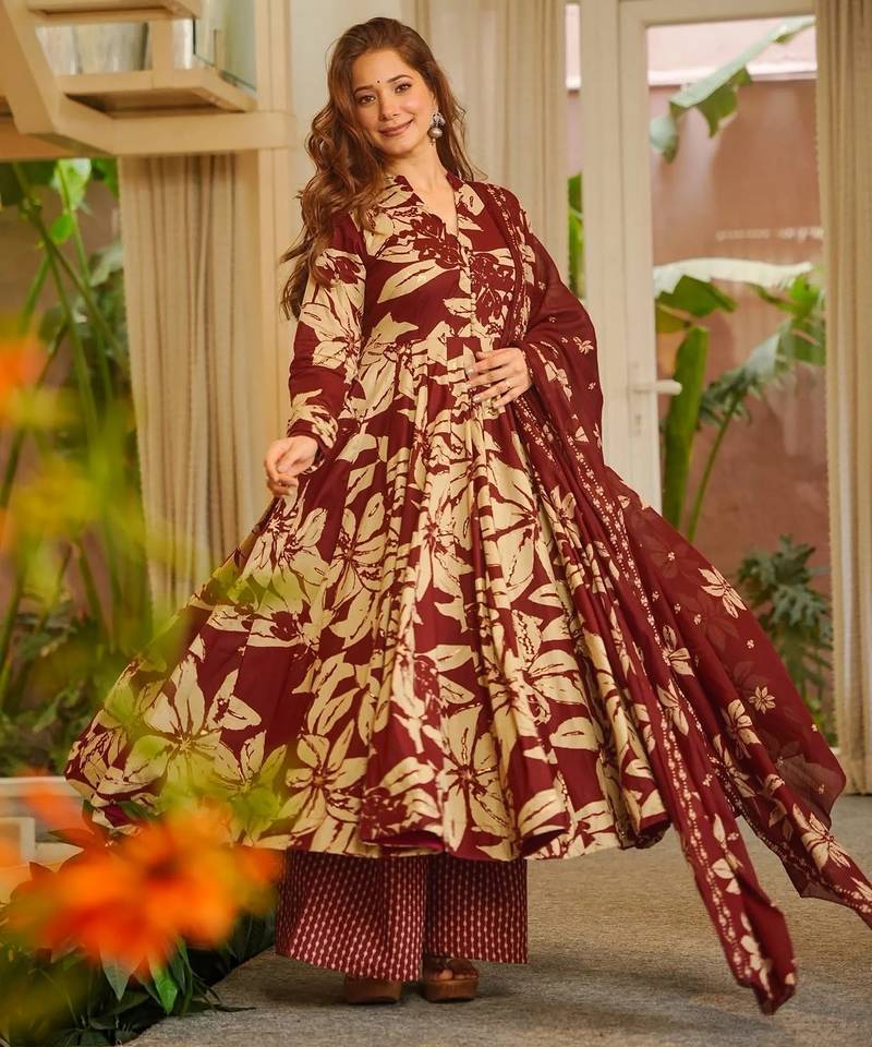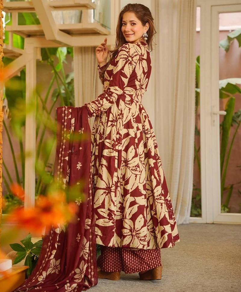 | Product Name | Burgundy Color Muslin Fabric Designer Printed Readymade Ceremonial Palazzo Dress | |