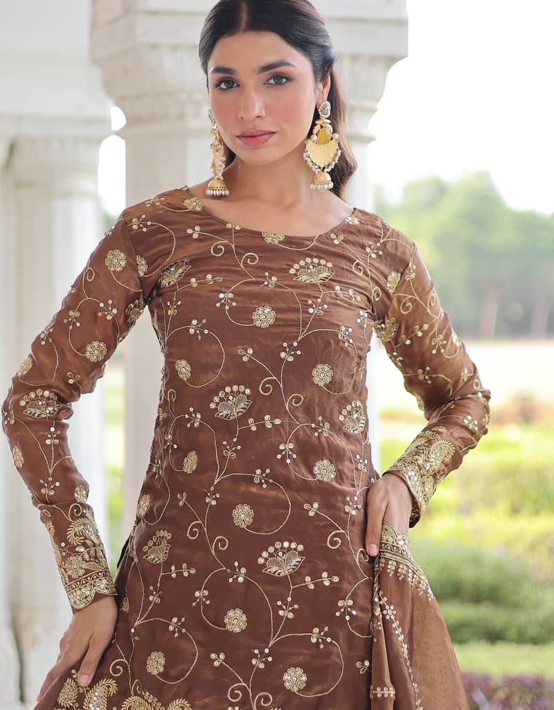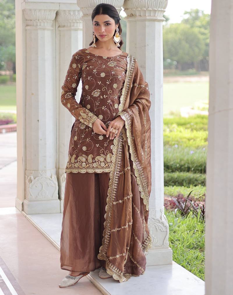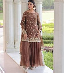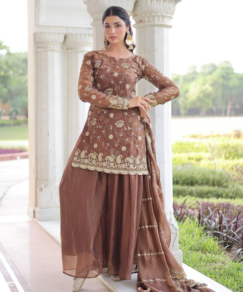 Coffee color beautiful partywear sharara dress for rich indian girlie looks
