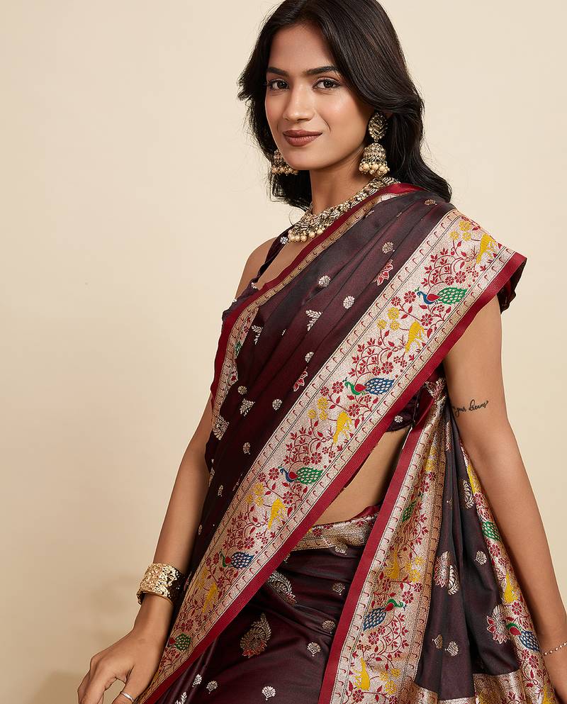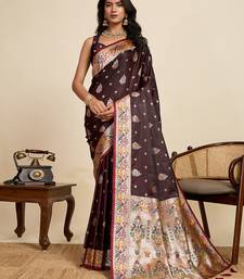 Coffee color coffee fabric wevon meenakari designer sophisticated ceremonial saree