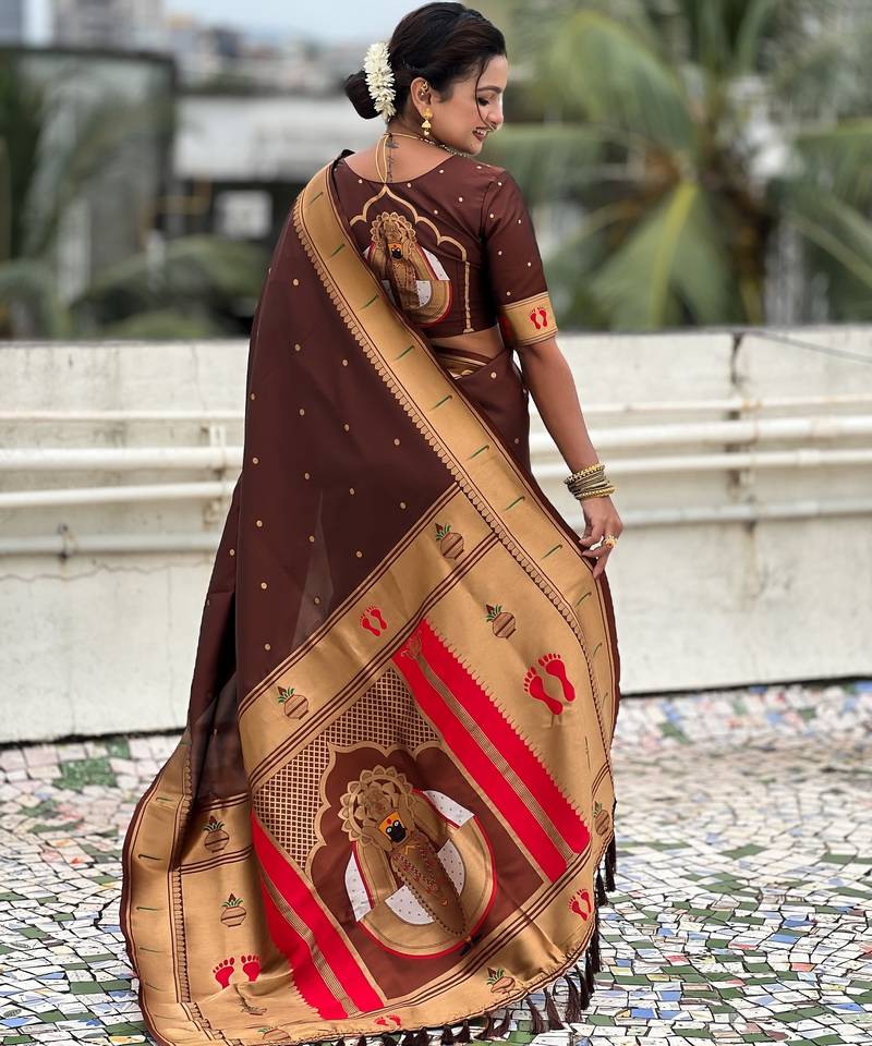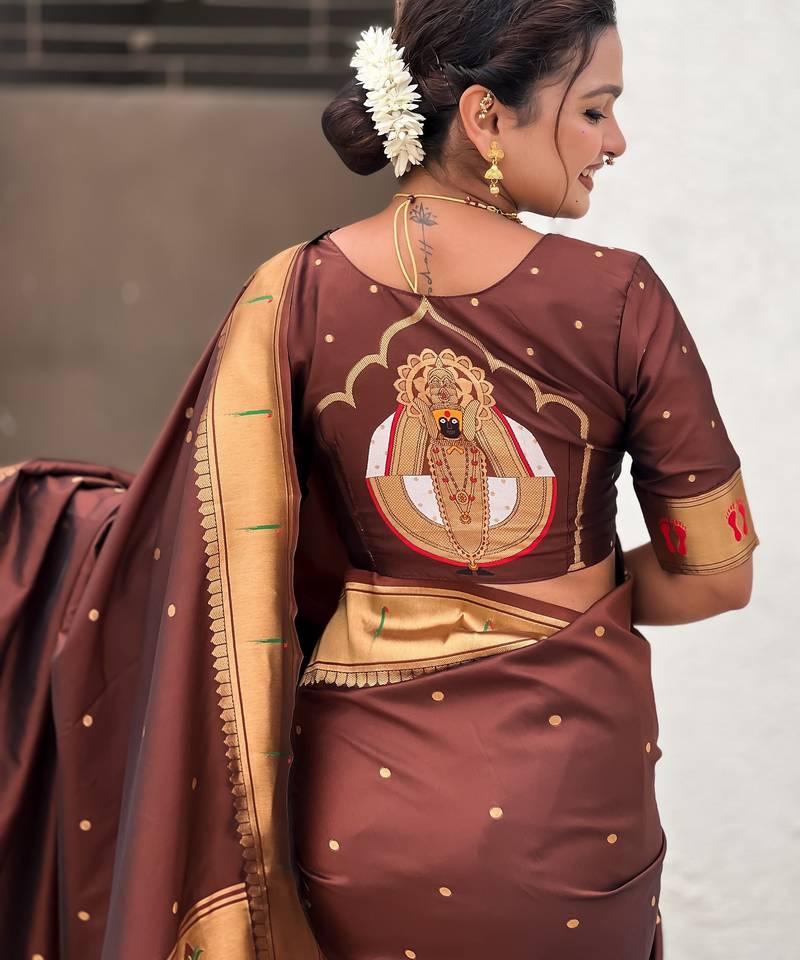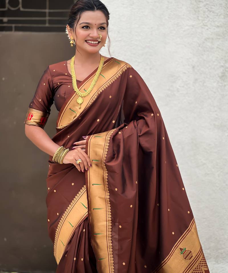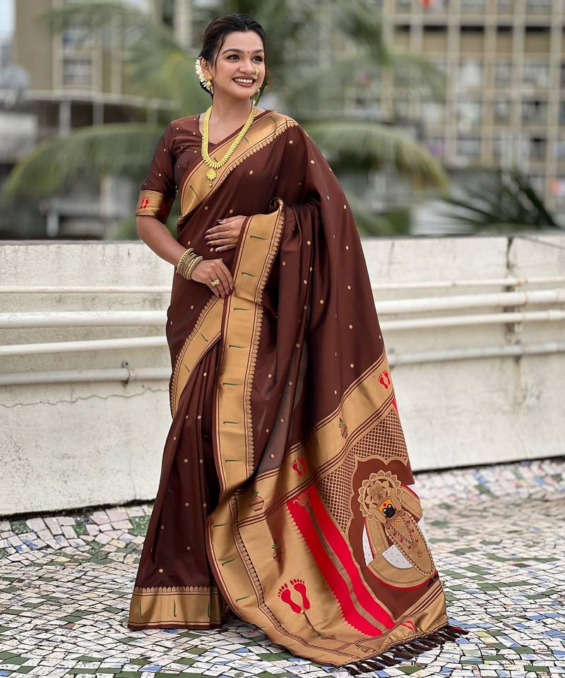Coffee color soft silk blend fabric woven paithani designer cultural rich saree