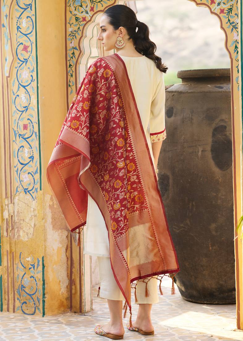 | Product Name | Cream Color Silk Blend Fabric Beautiful Embroidered Kurta Set With Dupatta | |