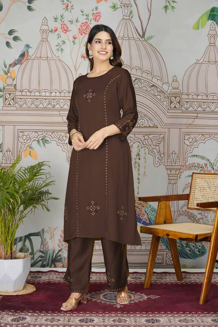 Dark grey color gajji silk ethnic and girlie smart printed kurta set