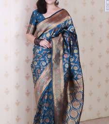 Denim blue color banarasi silk saree for graceful traditional looks saree