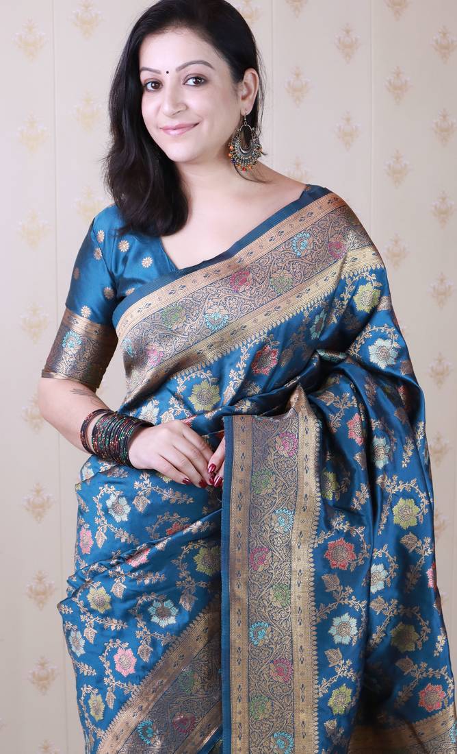 | Product Name | Denim Blue Color Banarasi Silk Saree For Graceful Traditional Looks Saree | |