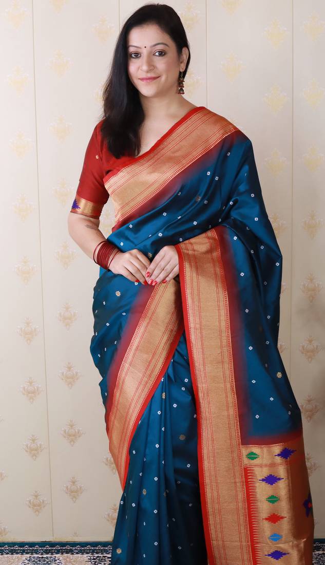 | Product Description | Garb These Party Wear Saree In Fine Colored.These Saree And Blouse Is Fabricated On Soft Silk.Its Beautified With Weaving Bandhani Jari,Paithani Meenakari Pallu Designer. |