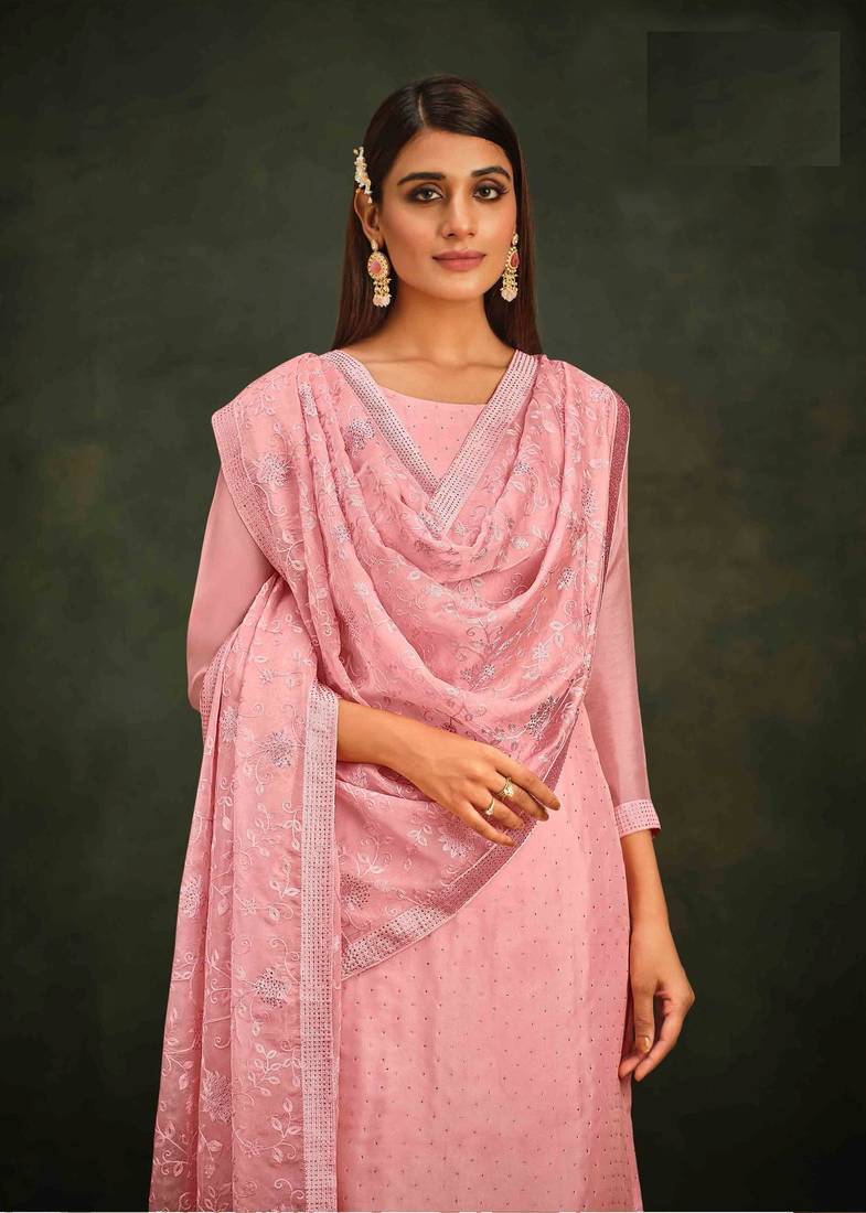 Ethnic pink colour resham embroidery work fancy partywear salwaar kameez semi stitched
