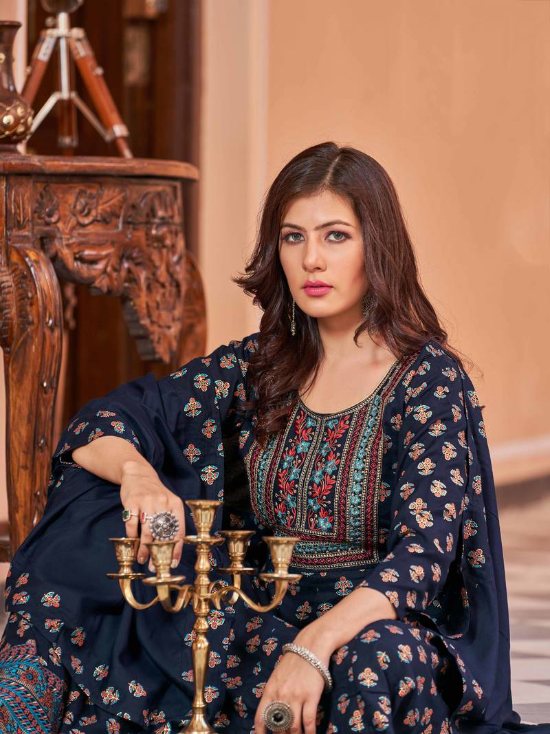 Ethnic rayon fabric embroidery kurti in blue colour party looks