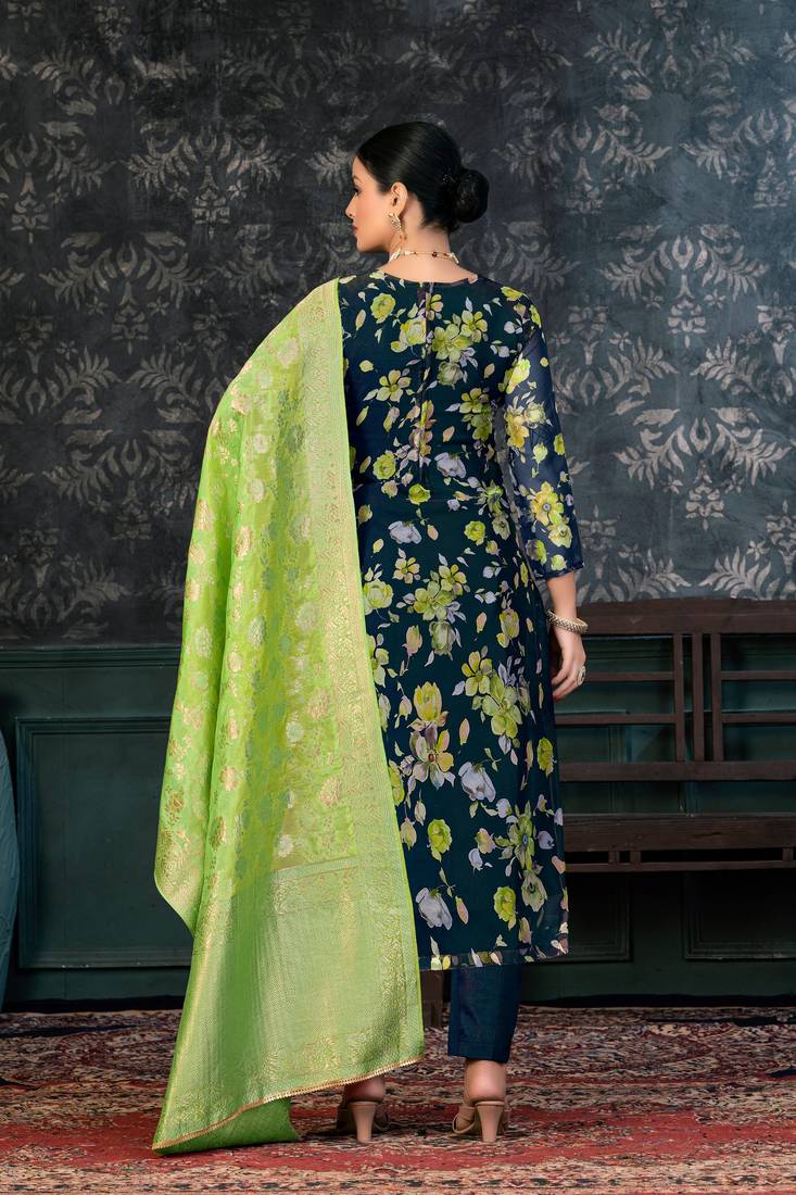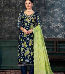 Festive wear blue colour ethnic smart suit for girls unstitched