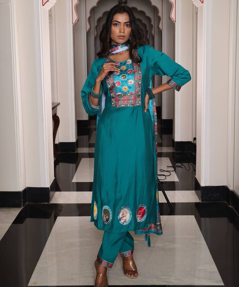 | Product Name | Firozi Color Viscose Simmer Fabric Embroidered Kurta Set | |