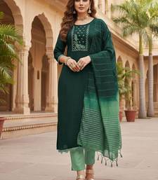 Green color beautiful formal looks ethnic embroidered suit unstitched
