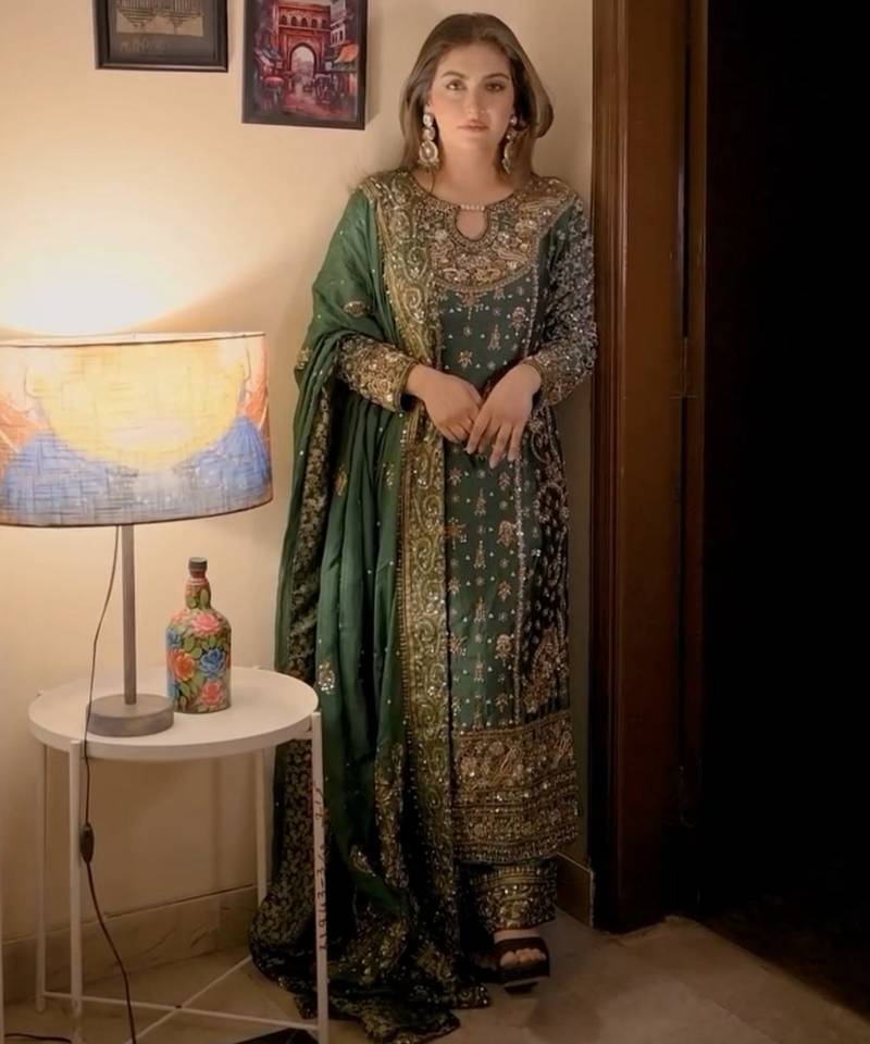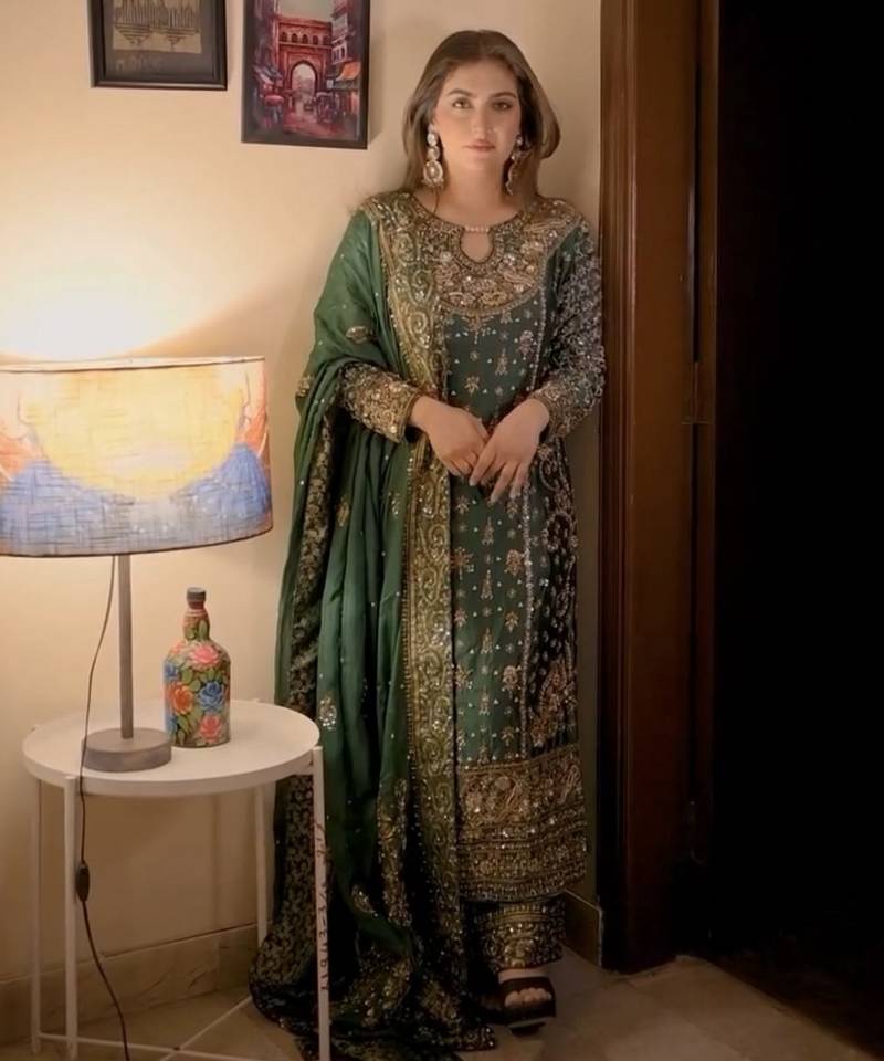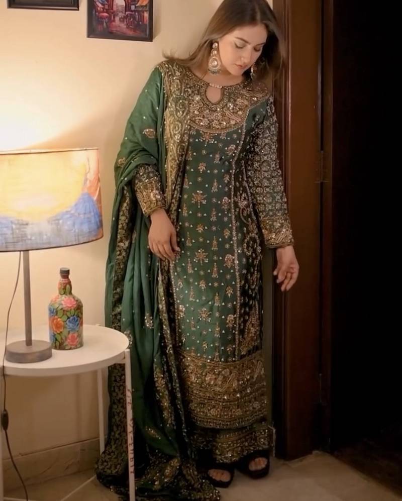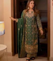 Product Name Green Color Georgette Fabric Heavy Partywear Palazzo Dress