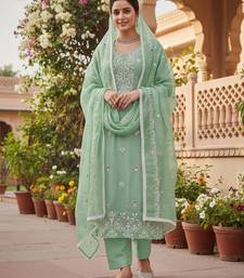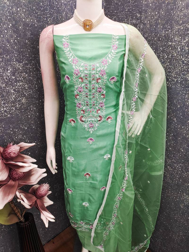 Green color glass cotton fabric embroidered ethnic salwar suit unstitched