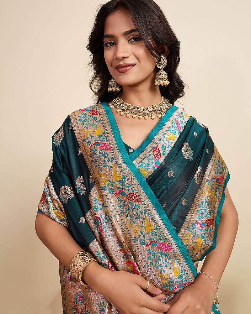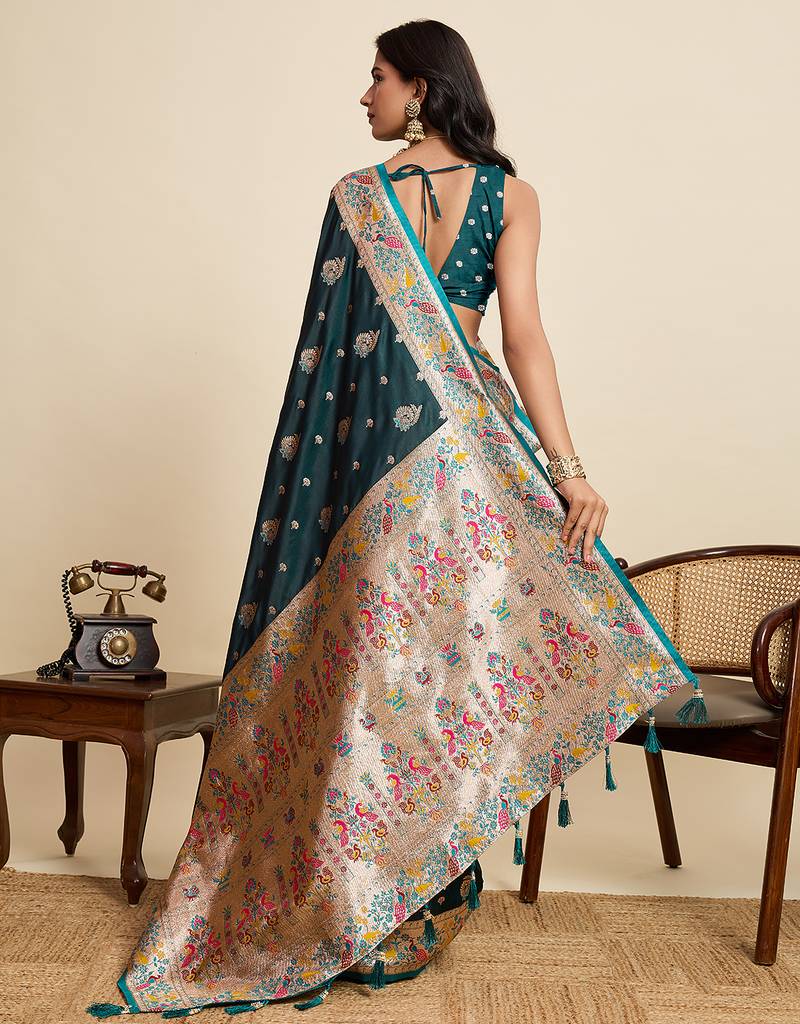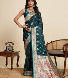Green color green fabric wevon meenakari designer sophisticated ceremonial saree