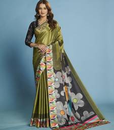 Green color malai crepe art silk fabric beautiful digital printed saree
