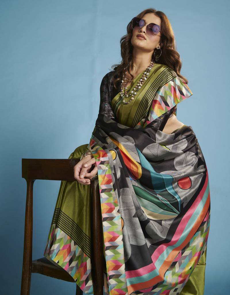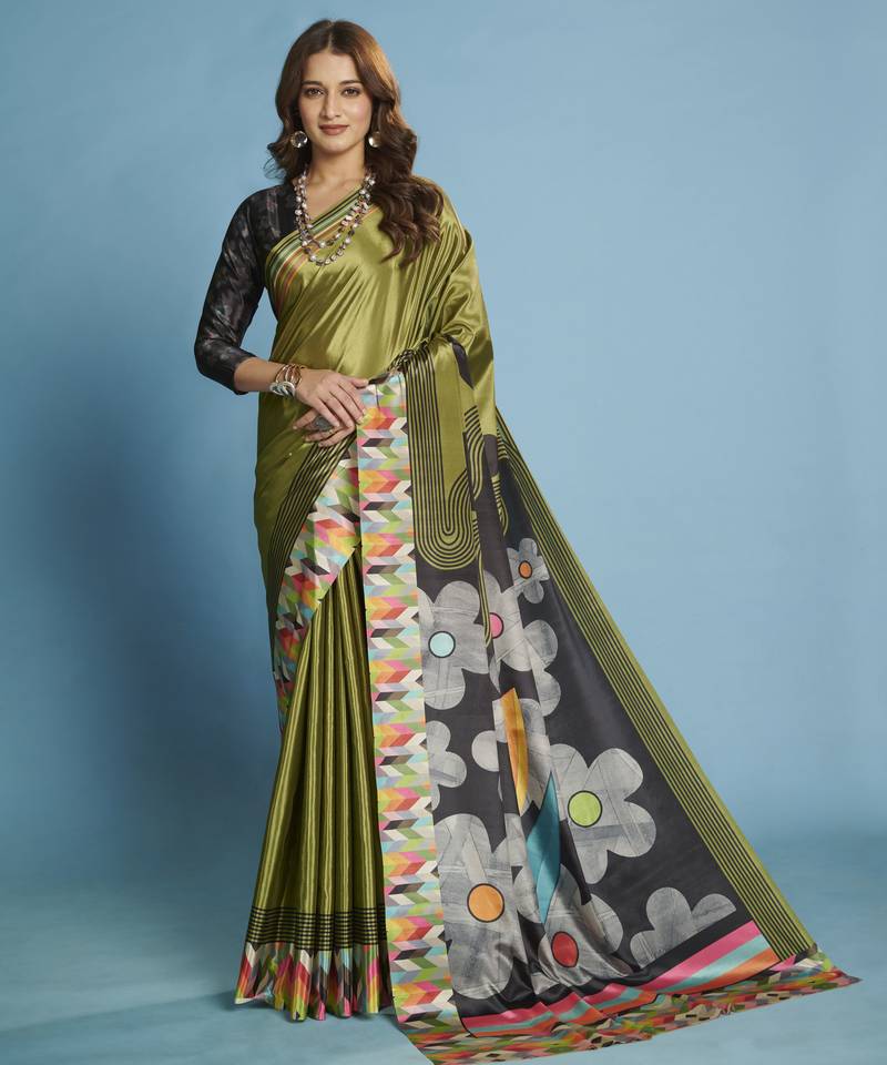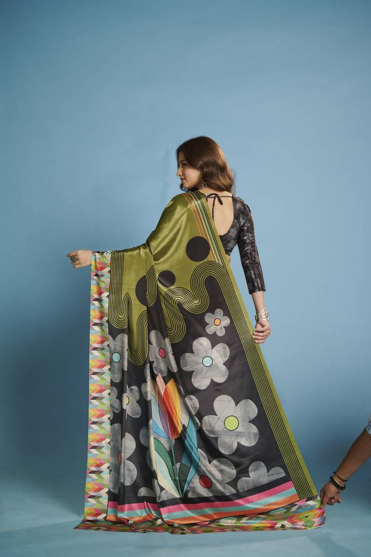 | Product Name | Green Color Malai Crepe Art Silk Fabric Beautiful Digital Printed Saree | |
