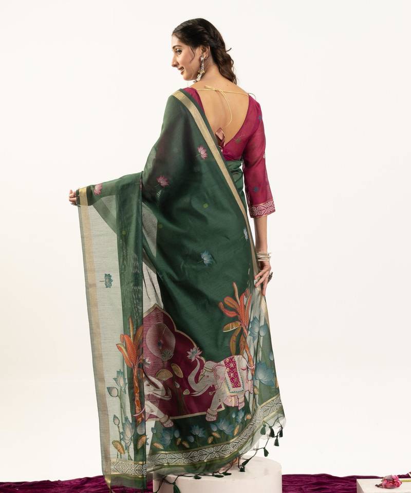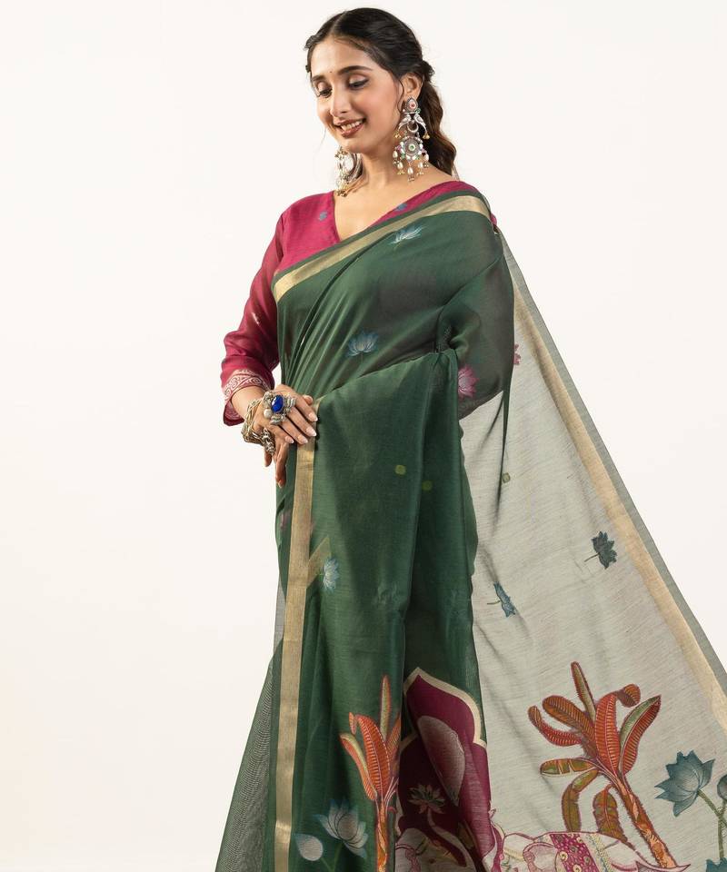 | Product Name | Green Color Muga Cotton Fabric Rajwadi Weaving Designer Ethnic Classic Saree | |